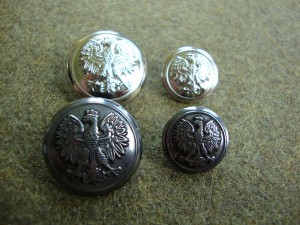 Guzik oficerskie wz. 28 (sztancowane) w rozmiarach średnica 16 (mały) 22 ( średni mundurowy) 25 ( duży płaszczowy)