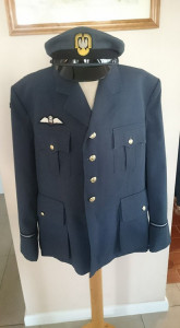 Mundur lotniczy oficera Polskich Sił Powietrznych RAF wykonany z gabardyny stalowo-niebieskiej.