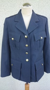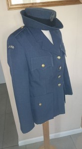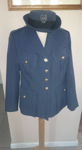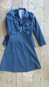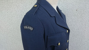 Mundur Pomocniczej Lotniczej Służby Kobiet wykonany z gabardyny w kolorze stalowo-niebieskiej