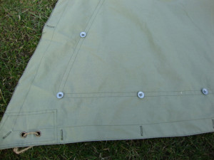 Materiał użyty do produkcji jest fabrycznie zaimpregnowany i w związku z tym nie przepuszcza wody. W zestawie komplet guzików (71 sztuk) oraz okucie na bagnet.