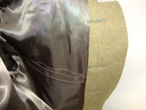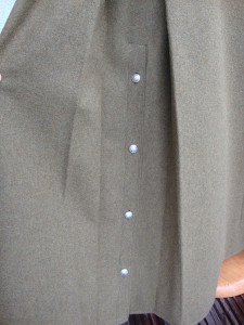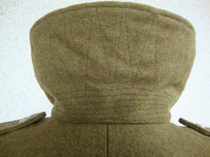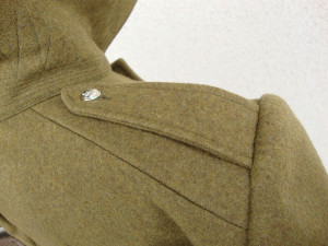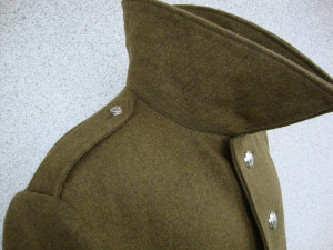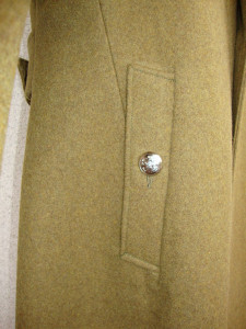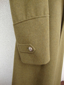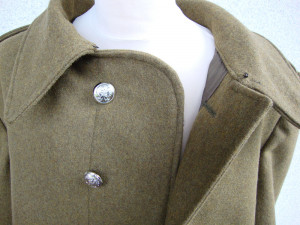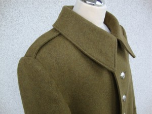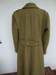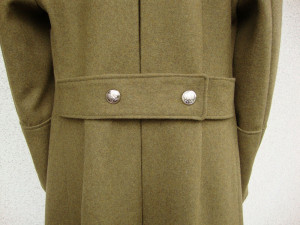 Płaszcz oficerski wz. 36, wykonany z sukna "nowej barwy" w ofercie z guzikami oficerskimi "sztancowanymi".