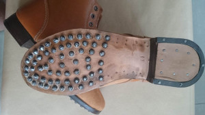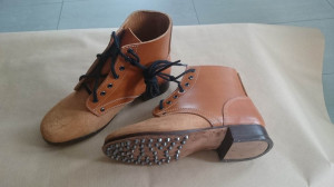 Trzewiki wykonane według WT z naturalnej roślinnie garbowanej skóry. Podeszwa kołkowana i podkuta gwoździami